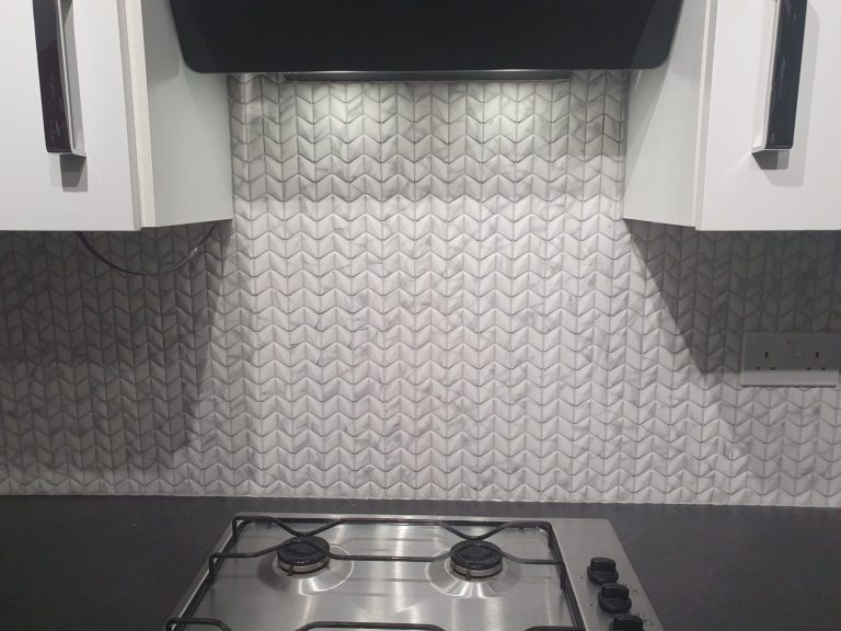 Tight and intricate tiling around an oven